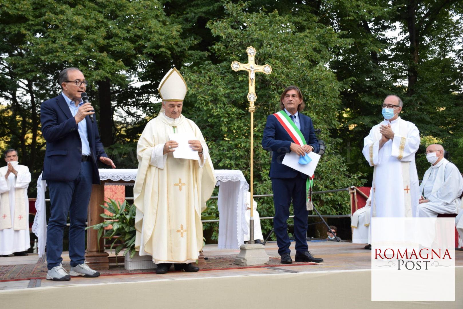 Sabato 8 agosto 2020, anniversario della nascita della Beata Benedetta Bianchi Porro (1936 – 1964), Dovadola ha vissuto una giornata speciale e molto intensa. Tutte le iniziative promosse per l’occasione dalla Diocesi di Forlì-Bertinoro si sono concentrate nel paese della valle dell’Acquacheta ottenendo un riscontro molto superiore alle aspettative. Per fare in modo che i vari momenti programmati si potessero tenere in sicurezza ed accogliere nel migliore dei modi i partecipanti sono state coinvolte varie realtà del paese, che hanno risposto in modo sollecito e con un impegno molto fattivo. In questa azione si sono distinti la Protezione Civile, la Pro Loco, di cui sono presidenti rispettivamente Roberto Bartolini e Mirco Tedaldi, le volontarie e i volontari della parrocchia di Dovadola, con in testa Giovanna Foligni, Marcella Manuzzi, Chiara Nonni, Viera Pezzi, Matteo Ferlini (impossibile fare un elenco completo). Per accogliere tutti è stato allestito con un palco e 360 sedie, dopo averlo “tirato a lucido”, lo straordinario parco di Villa Badia, attiguo all’abbazia di Sant’Andrea. Scelta che si è dimostrata vincente, perché alla celebrazione della Santa Messa da parte di mons. Livio Corazza, vescovo di Forlì-Bertinoro, hanno partecipato ben 400 persone, occupando tutte le sedie e diverse decine sono rimaste in piedi, mentre in chiesa sarebbero potute entrare poche decine di fedeli. Presenti anche alcuni familiari di Benedetta Bianchi Porro.