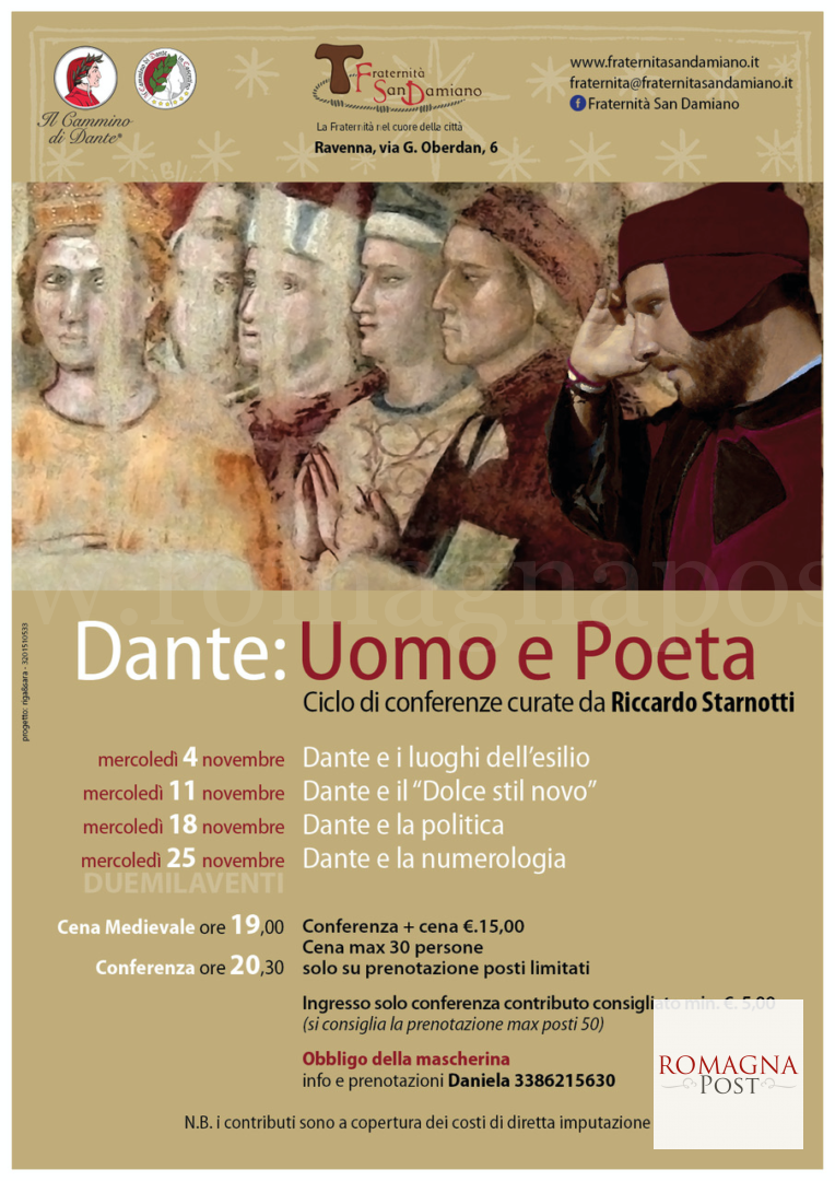 La Fraternita San Damiano organizza un ciclo di conferenze su Dante come uomo e poeta, celebrando il 700centesimo del Poeta assieme alle innumerevoli iniziative che si terranno a Ravenna per riconoscere al all’ uomo e Poeta la sua magnificenza conosciuta in tutto il mondo.