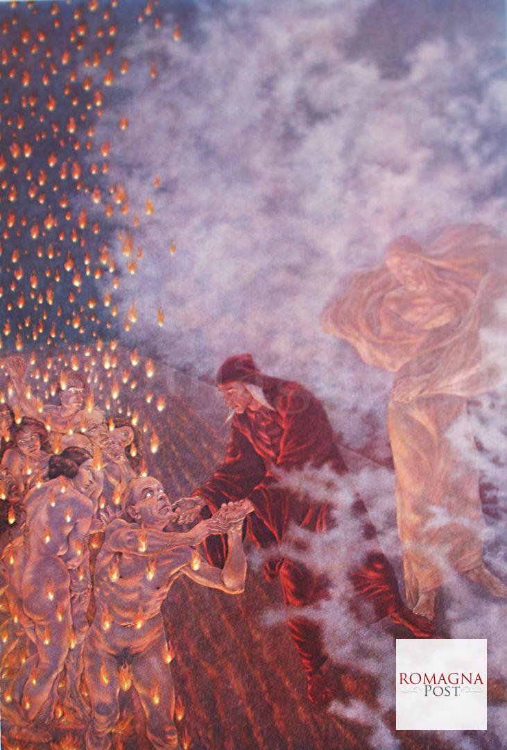 Com’è noto il Sommo Poeta visse i primi anni del suo esilio a Forlì e gli ultimi a Ravenna, città che ne conserva tuttora le spoglie a dispetto dei fiorentini che da tempo ne chiedono una ingiustificata restituzione. Nel poema dantesco i romagnoli compaiono in gran numero, secondi solamente ai toscani. Eppure, nonostante questa copiosa presenza, nessuno dei nostri antenati trova posto in Paradiso: tanti all’Inferno, alcuni in Purgatorio, nessuno, a parte qualche santo tra cui San Pier Damiani (Canto XXI, Paradiso), a bearsi della luce eterna!