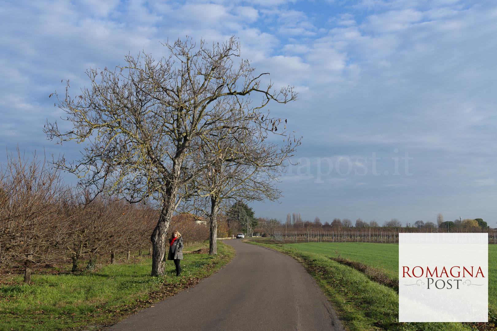 I due alberi di cui intendo parlare (vedi foto di Giulio Sagradini) si trovano quasi all’altezza del cartello stradale che indica la fine del centro abitato di Forlì ed hanno a fianco un frutteto con 110 piante di cachi e un vigneto composto da 18 filari di viti, mentre dalla parte opposta un vasto appezzamento di terreno, che confina con la parallela via Zampeschi, è coltivato a grano. Siamo in una zona dov’è possibile fare anche una salutare camminata partendo dal parcheggio che si trova nel centro abitato di Ospedaletto, in via Somalia, di fronte al circolo Taverna Verde. Da questo punto si può raggiungere via Mastaguerra, che ha un traffico esclusivamente locale, e quando la si imbocca si possono notare un noce altrettanto antico e alberature di varie specie che fanno da corollario alle numerose abitazioni collocate su entrambi i lati del primo tratto.