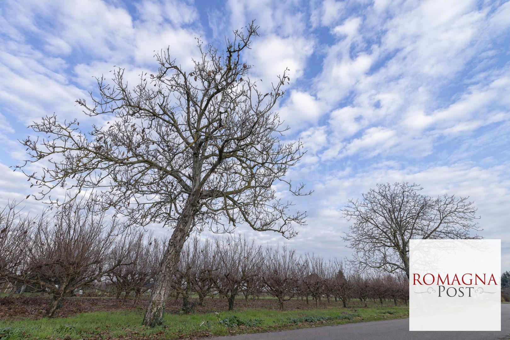 Considerato l’importante ruolo che la coltivazione di noci ha assunto nel territorio forlivese non potevo non segnalare, su suggerimento di Alessandra Artusi e Claudio Guidi, la presenza di piante “particolari” di questa specie per la loro collocazione, nonché vetustà, come le due che si trovano sul ciglio sinistro della via Mastaguerra nel tratto in cui la strada corre verso la frazione di San Giorgio, che probabilmente hanno 70/80 anni. Si potrebbero, ovviamente, portare altri esempi, come i noceti di via Montaspro, al Ronco, di via Correcchio, a Coriano, di viale Bologna, a Villanova, presenti da molto prima che questa coltivazione assumesse le dimensioni attuali, oppure dei noci antichi disseminati attorno a diverse case di campagna. Si potrebbe anche disquisire sul nome della frazione San Lorenzo in Noceto, dove noceto sta sicuramente per una coltivazione che caratterizzava la zona secoli fa.