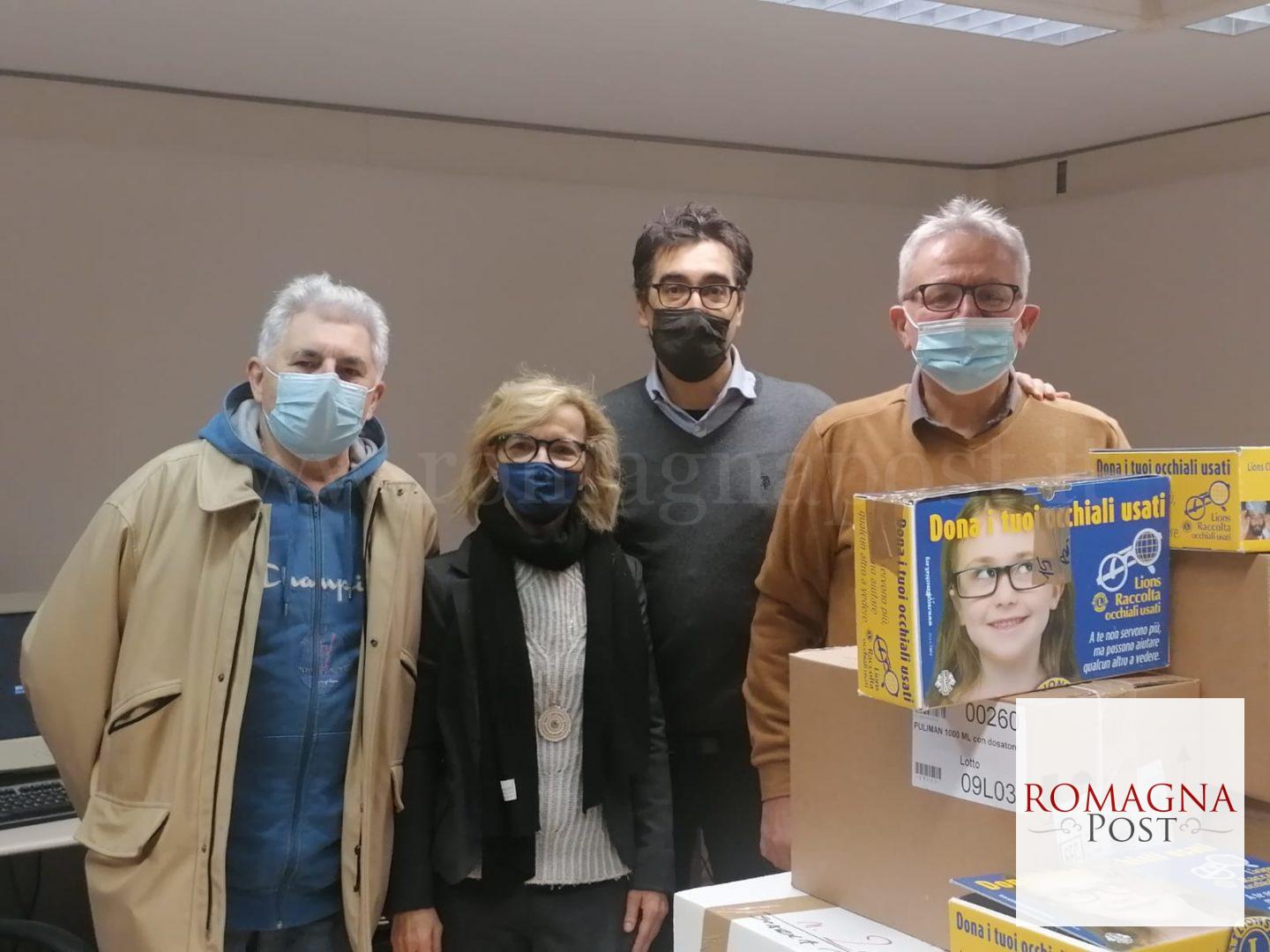 Al momento del ritiro dei 700 occhiali usati da parte di Roberto Amadori, socio Lions referente della raccolta, erano presenti per Forlifarma il presidente Mario Patanè, Paolo Ragazzini e Daniela Gimelli.