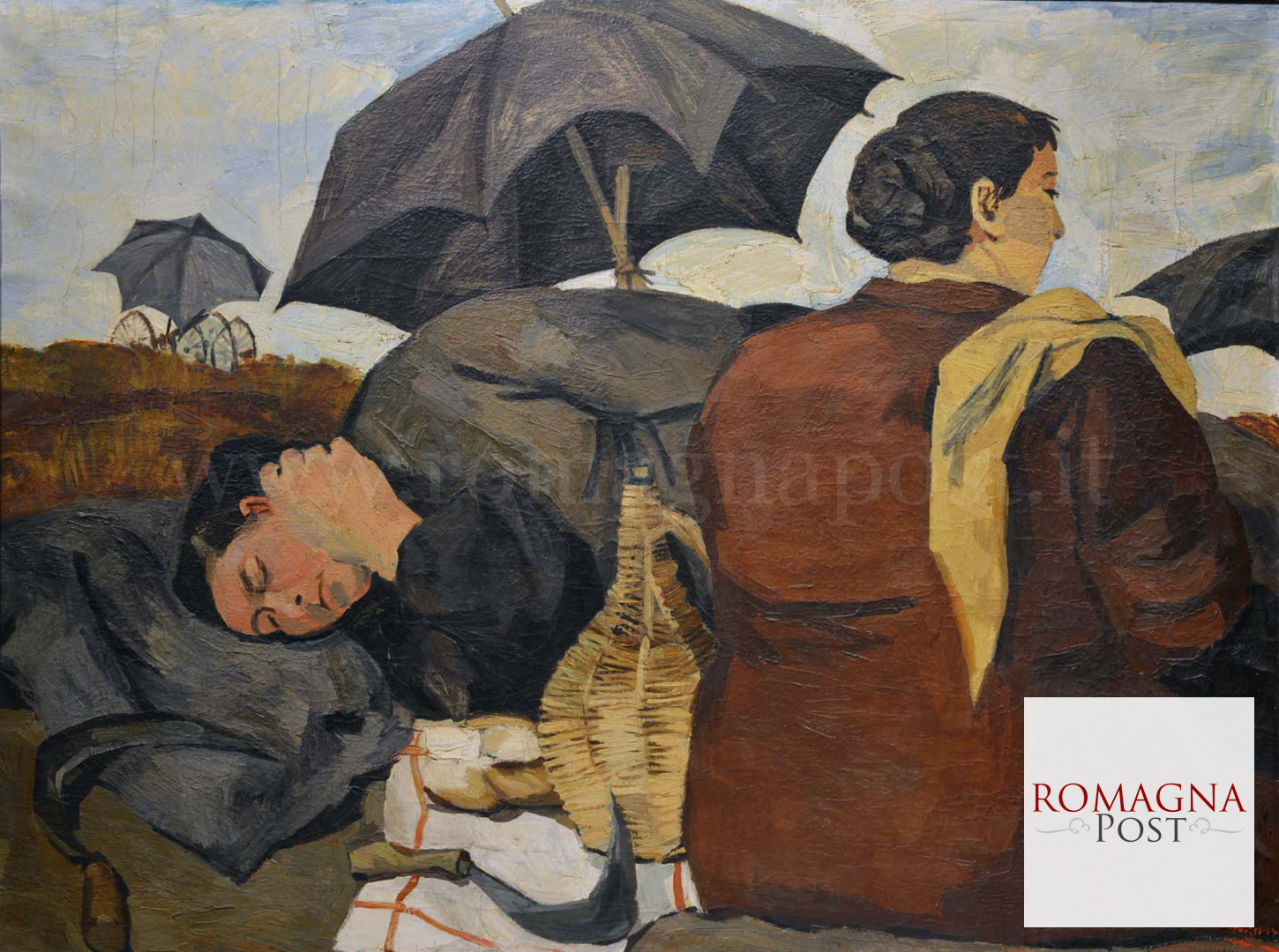 «In queste opere – commenta il curatore Diego Galizzi – prende vita la Romagna delle campagne e dei braccianti, restituita con uno sguardo da documentazione diretta e partecipe, uno sguardo potremmo dire “militante”, appassionato, dal sapore diverso rispetto a quello un po’ da rivisitazione nostalgica che caratterizzerà le sue immagini dei decenni successivi. Mai come in questi anni – prosegue Galizzi – il suo personale racconto popolare riesce a ritagliarsi un ruolo di primo piano nelle dinamiche dell’arte nazionale, in particolar modo nell’ambito dei fermenti neorealisti dei primi anni Cinquanta.»