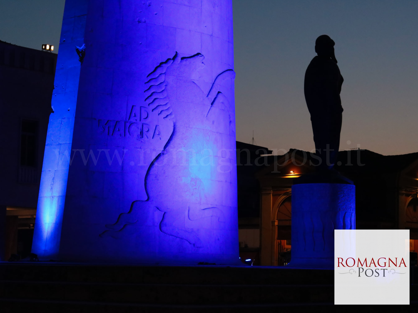 LUGO. Nella serata di venerdì 2 aprile il monumento a Francesco Baracca di Lugo si è illuminato di blu in occasione della Giornata mondiale della consapevolezza sull’autismo.