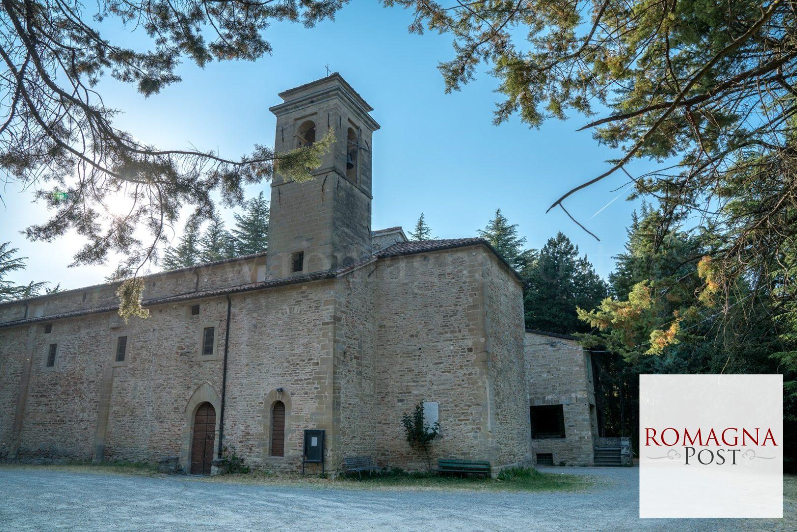 Quasi sulla sommità della collina, attorniato da un bosco di pini e di cipressi, si trova l’Abbazia di Sant’Ellero, un monumento di grande rilevanza storico-artistica del territorio romagnolo, uno dei più antichi monasteri del mondo occidentale, fondamentale centro religioso e di cultura medievale. Sarebbero sufficienti queste poche indicazioni per non avere dubbi sull’opportunità di organizzare un’escursione sul posto, ma se occorrono ulteriori elementi si può partire dal V secolo quando il municipio romano di Menaviola venne abbandonato per lasciare spazio ad altre entità in grado di catalizzare insediamenti e di svolgere un ruolo primario nella gestione del territorio; un territorio che doveva prepararsi a una consistente militarizzazione da un lato, e a una profonda cristianizzazione dall’altro. È in questo contesto che emerge la figura di Hilarius, meglio noto come Ellero di Galeata, la cui opera di cristianizzazione e attrazione spirituale condizionò la storia dell’Appennino e ne orientò in modo significativo le vicende”.