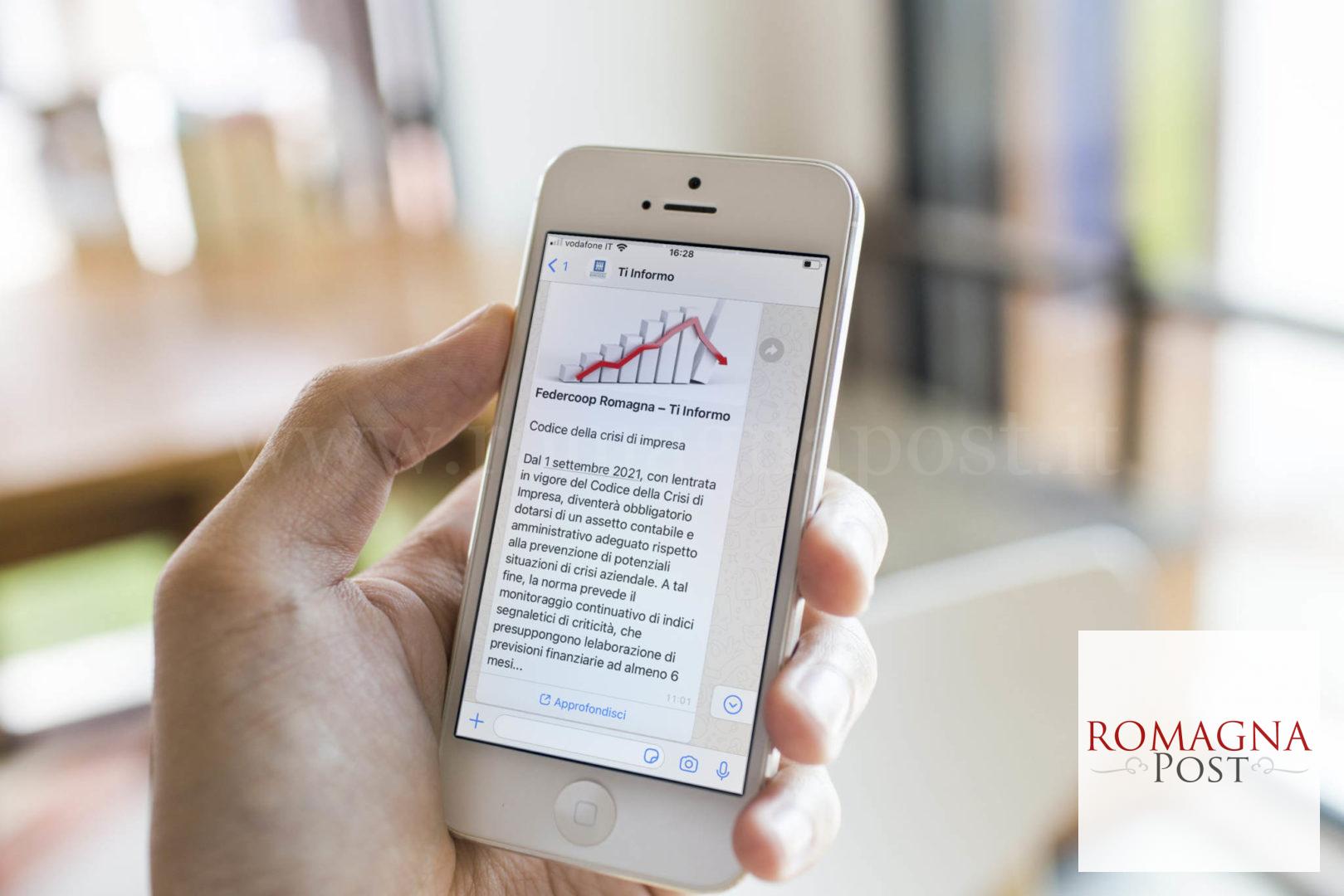 Come funziona in pratica? Le imprese interessate possono collegarsi alla pagina www.federcoopromagna.it/ti-informo e inserire il numero di cellulare associato al proprio WhatsApp. Un messaggio su WhatsApp conferma l’attivazione e da quel momento, regolarmente, verranno inviati aggiornamenti con la possibilità di richiedere una consulenza immediata per approfondire. Insomma, solo messaggi mirati, di approfondimento e, attraverso WhatsApp, anche la possibilità di entrare subito in contatto telefonico con il proprio consulente di fiducia. “Ti Informo” è completamente gratuito.