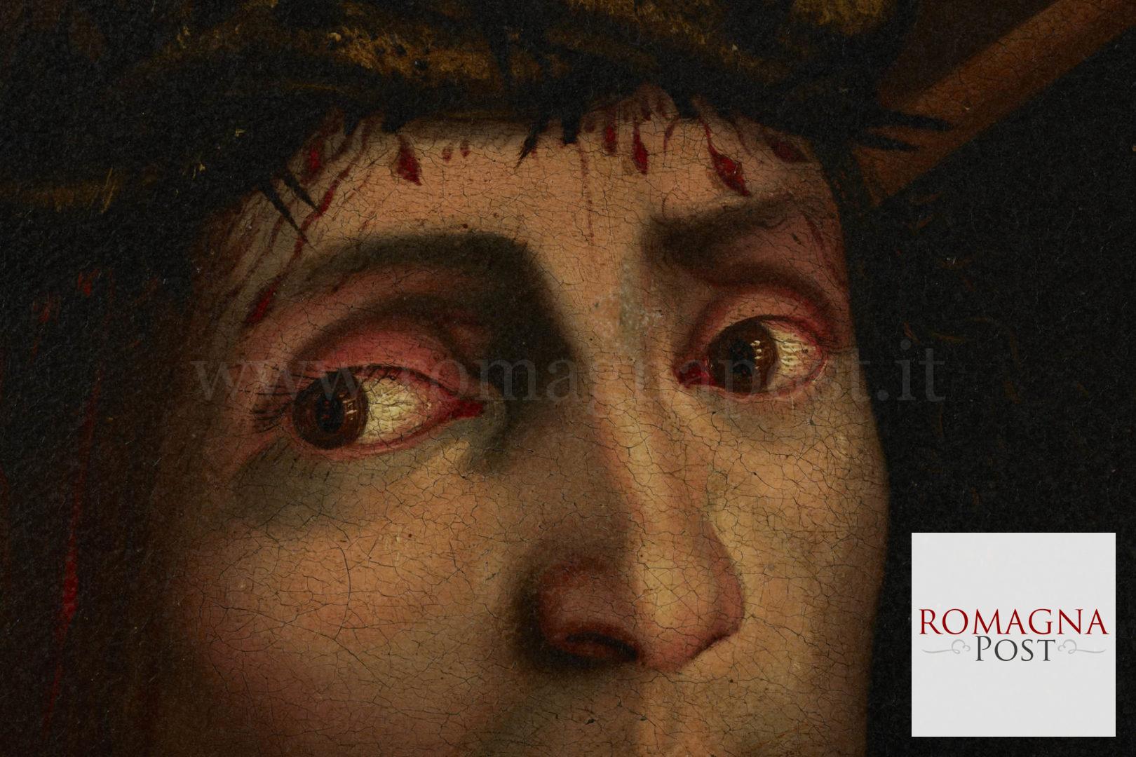 La tela raffigura Cristo durante la salita al Calvario attraverso un’iconografia molto in voga nel primo decennio del Cinquecento: l’inquadratura stringe sul volto di Cristo, eliminando i dettagli di contorno e dello sfondo, per concentrarsi sugli aspetti più patetici e commoventi, e invitare alla contemplazione del suo sacrificio.