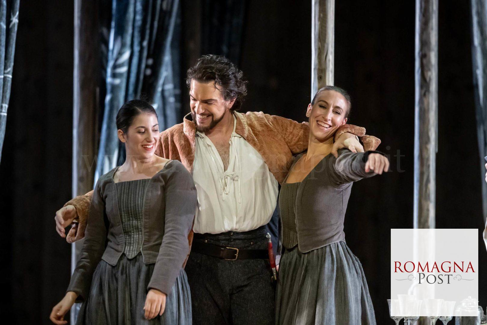 Presentata a Ravenna nell’originale versione che debuttò a Praga nel 1787, perché “più chiara, naturale e vivace” – ha sottolineato il regista – Don Giovanni fiorisce dove la Commedia dell’Arte incontra il soprannaturale e il lirismo proprio dell’opera “seria”, dove tragico e comico convivono. Tornano in scena, dopo l’impegno per Le nozze di Figaro, Arianna Vendittelli e Robert Gleadow, rispettivamente come Donna Elvira e il servitore Leporello, mentre il protagonista eponimo è il baritono Christian Federici (già coinvolto nella Carmen della Trilogia 2019). Il suo Don Giovanni, destinato all’inferno dopo le scorribande erotiche e non, tenta di sedurre con l’inganno la Donna Anna di Iulia Maria Dan (promessa al Don Ottavio di Julien Henric) e finisce per ucciderne in duello il padre, il Commendatore affidato al basso Callum Thorpe, che nella sua Inghilterra collabora con la Royal Opera House, Glyndebourne e Opera North. Nello spirito della Commedia dell’Arte, che prevede l’avvicendarsi degli interpreti in ruoli diversi, Thorpe interpreta anche il contadino Masetto, mentre la sua sposa Zerlina – anch’ella oggetto delle mire di Don Giovanni – è Chiara Skerath.