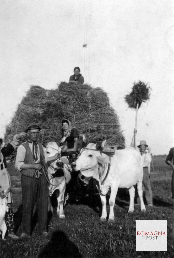 Un lavoro immane ed una fatica fisica oggi impensabile ed improponibile; questo era Il lavoro contadino, cioè la sommatoria di fatiche fisiche senza risparmio, ansie, speranze troppo spesso troncate dalle avversità atmosferiche, capaci di compromettere fino all’ultimo un buon raccolto. La fienagione, la mietitura e la trebbiatura del grano, l’aratura del terreno, la raccolta e la lavorazione della canapa coincidevano con i mesi più caldi dell’anno ed erano i lavori che impegnavano uomini e donne indistintamente.