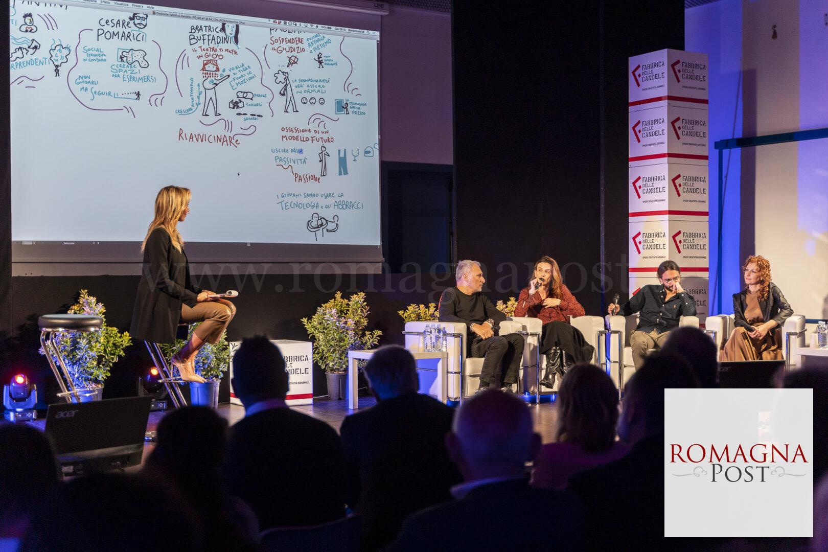 Teatro della Fabbrica delle Candele gremito, nonostante il maltempo, per l’evento con la giornalista televisiva Simona Branchetti che ha portato sul palco, attraverso le voci dei protagonisti, le tante iniziative del progetto Fabbrica 2.0. L’assessore alle Politiche Giovanili del Comune di Forlì, Paola Casara: “Alla Fabbrica delle Candele abbiamo toccato con mano la dinamicità dei giovani. Il nostro compito come amministratori è fornire loro spazi e risorse”.