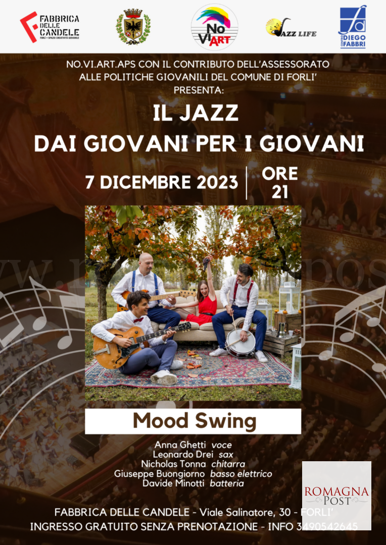 Mood Swing, giovane band di Forlì-Cesena, composta da ragazzi per la maggior parte under 30, è stata creata nel 2019 ed è composta da Anna Ghetti alla voce, Nicholas Tonna alla chitarra, Giuseppe Buongiorno al basso/contrabbasso e Davide Minotti alla batteria. Per l’occasione il gruppo vedrà la partecipazione del sassofonista Leonardo Drei.