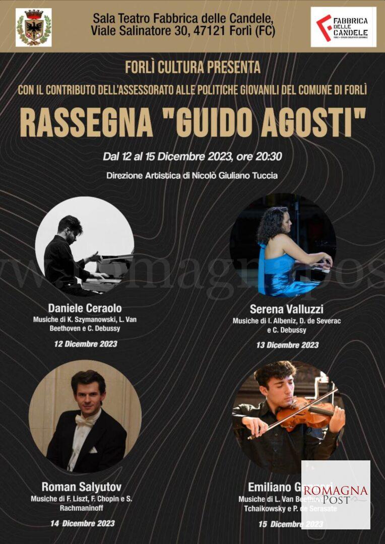 La Rassegna “Guido Agosti”, proposta dall’Associazione Forlì Cultura all’Unità Politiche Giovanili per il bando “Fabbrica 2.0” 2023-2024, si colloca in un’offerta culturale cittadina capace di attirare visitatori nazionali e internazionali. Questa prima edizione prevede a programma quattro concerti, suddivisi in altrettanti recital pianistici di alto livello.