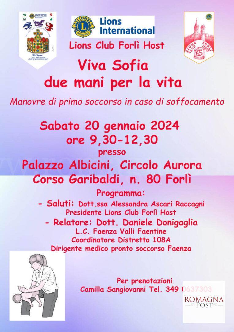 Sabato 20 gennaio 2024, dalle 9.30 alle 12.30, presso il Circolo Aurora, Palazzo Albicini, in corso Garibaldi 80 a Forlì, si terrà un corso di disostruzione delle vie aeree e di primo soccorso e di rianimazione di base, organizzato dal Lions Club Forlì Host.