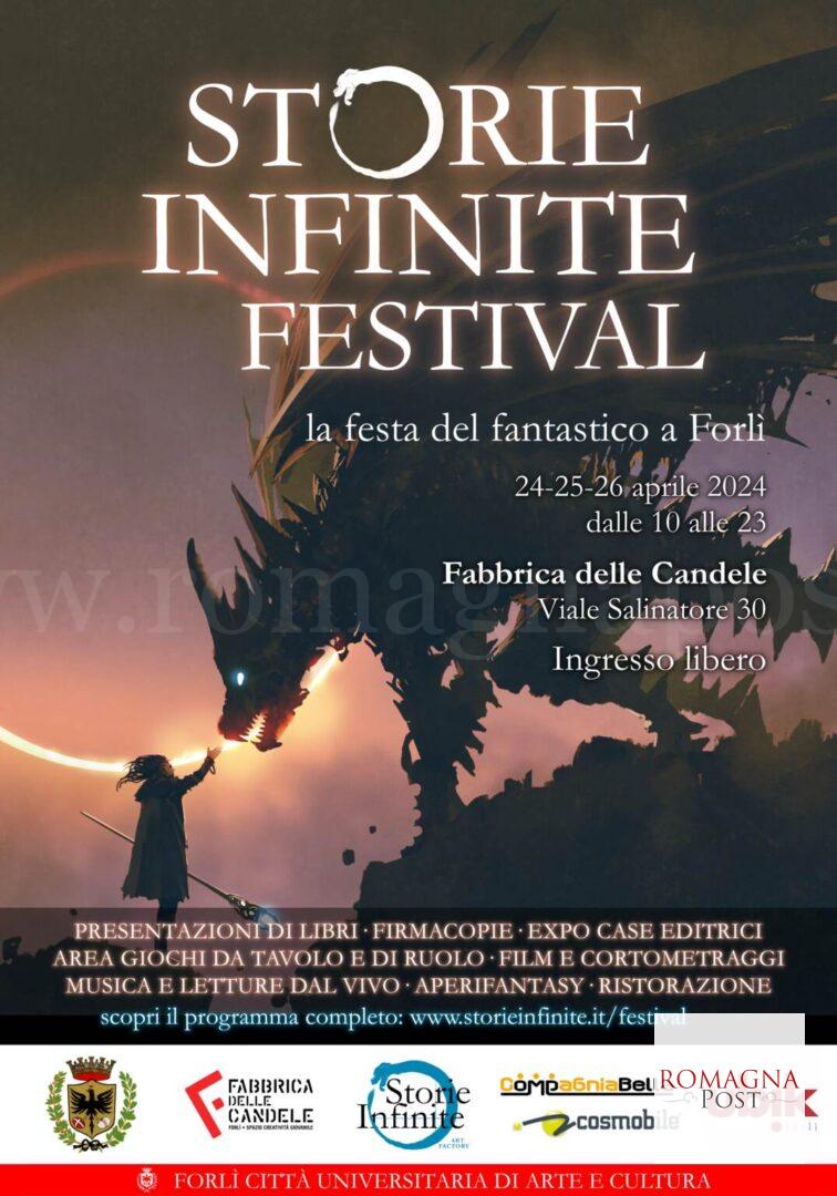 Organizzato da Storie Infinite – Art Factory con la collaborazione di Associazione Compagnia Bella, Patrocinato dal Comune di Forlì e sponsorizzato da Cosmobile Srl, “Storie Infinite Festival” è una kermesse di tre giorni interamente dedicata al genere fantastico, declinato tanto nei suoi sottogeneri (fantasy, fantascienza, horror, weird…) quanto nei suoi linguaggi espressivi (libri, film, arte visiva, giochi da tavolo e di ruolo) che si propone di divenire un appuntamento fisso di rilevanza nazionale nella primavera forlivese.