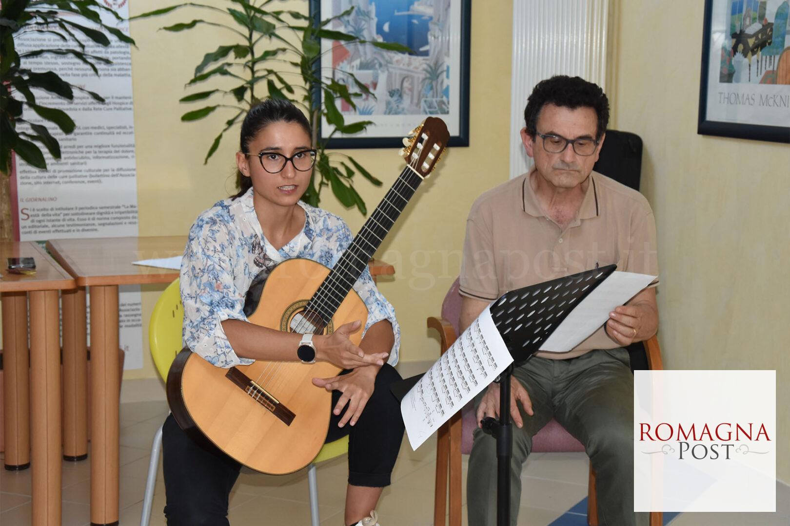 Protagonista dell’evento musicale è stata la chitarrista Giulia Maltoni, 27 anni, di cui oltre 20 trascorsi nello studio e nel perfezionamento dello strumento sotto la guida del maestro Paolo Benedetti, presso il Liceo Musicale Masini di Forlì, per poi conseguire la laurea in chitarra classica. Per Giulia non si è trattato della prima esperienza di un concerto in un luogo di cura: già nello scorso mese di gennaio si era esibita presso l’Ospedale Bufalini di Cesena.