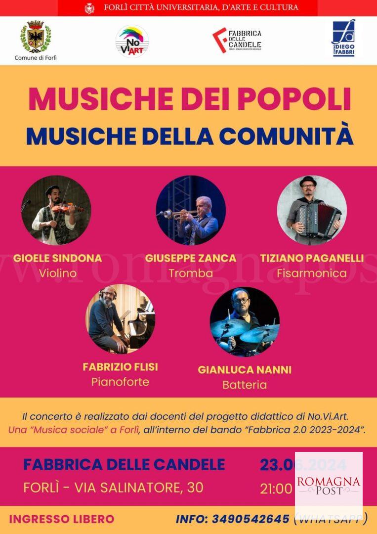 Domenica 23 giugno a esibirsi alla Fabbrica delle Candele di Forlì in viale Salinatore 30 (ore 21) saranno invece i docenti: Gioele Sindona (violino) e Giuseppe Zanca (tromba), insieme a Tiziano Paganelli (fisarmonica), Fabrizio Flisi al pianoforte e Gianluca Nanni (batteria).
