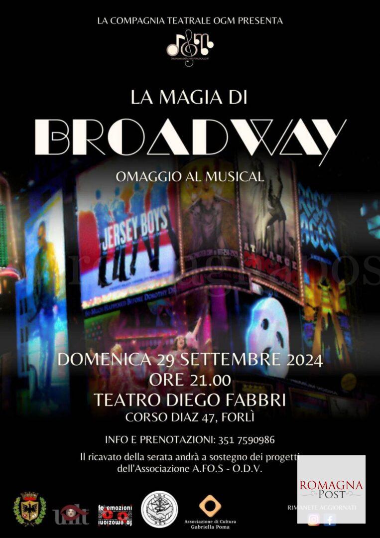 La compagnia teatrale O.G.M. (Organismi Geneticamente Musicalizzati) è lieta di annunciare uno spettacolo unico: “La Magia di Broadway. Omaggio al musical”, che si terrà domenica 29 settembre 2024, alle ore 21:00, presso il Teatro Diego Fabbri di Forlì.