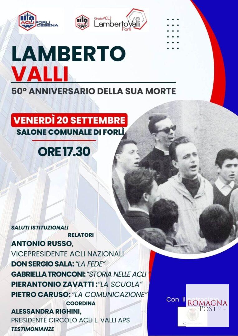 Venerdì 20 settembre 2024, alle ore 17.30, presso il Salone Comunale, piazza Saffi 8, Forlì, verrà ricordato Lamberto Valli nel 50° anniversario della sua morte.