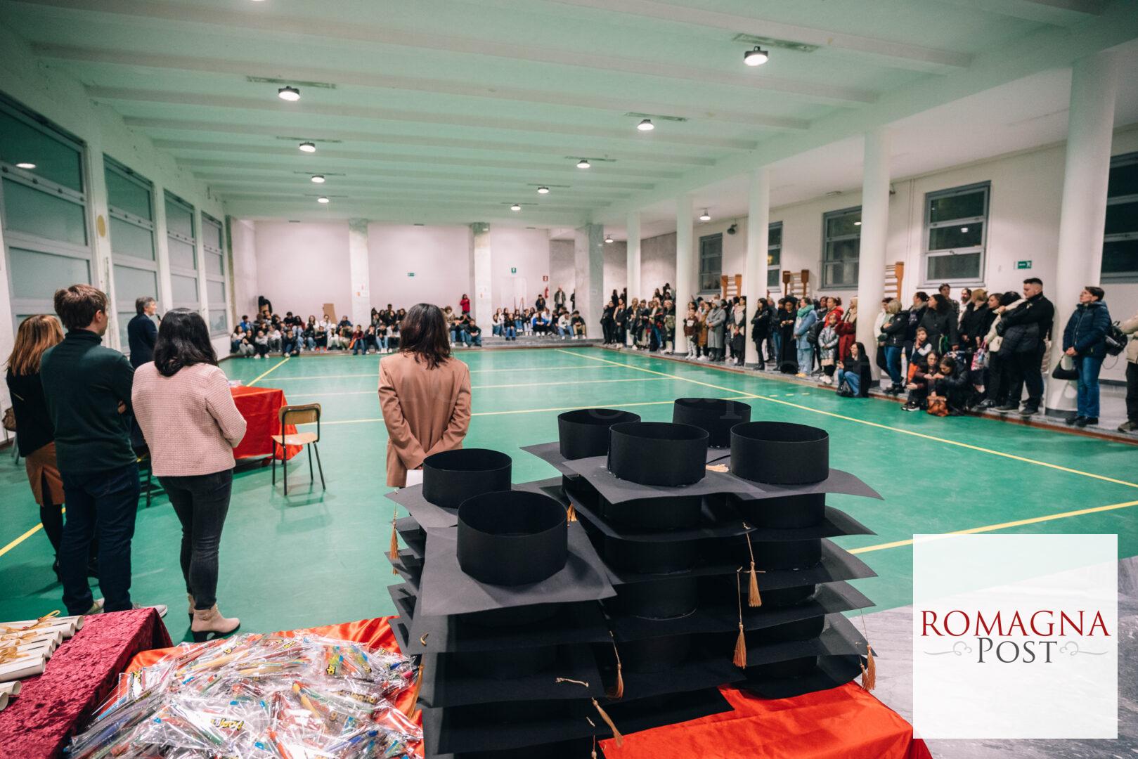 Per il secondo anno consecutivo si è svolta all’Istituto Marco Palmezzano di Forlì la cerimonia di fine percorso della scuola secondaria di primo grado per le alunne e gli alunni che hanno concluso il triennio delle medie nell’anno scolastico 2023-24. L’affluenza degli ex studenti è stata molto elevata ed erano tutti felici nell’entrare nuovamente nella scuola che per tre anni li ha formati e portati ad iscriversi alle scuole superiori. Ad accoglierli c’erano la Dirigente scolastica professoressa Annalisa Fiorini ed il corpo docente, tutti egualmente emozionati nell’incontrare di nuovo studentesse e studenti ormai entrati nell’età dell’adolescenza e delle prime grandi e piccole trasformazioni della vita.