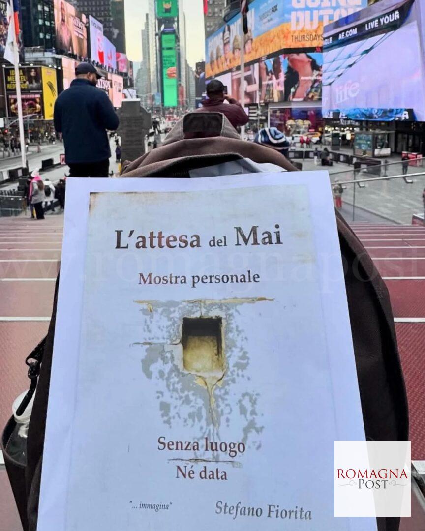 In queste giornate ricche di arte e di opinioni e di confronti, dove Arte Fiera e Art City White Night dominano sulle scene della splendida Città felsinea, il giovane artista Stefano Fiorita organizza e promuove un evento, un progetto molto personale dal titolo: “L’attesa del Mai”, esposizione pubblica Senza luogo Ne’ data. È chiaramente una provocazione efficace che intende criticare le mostre d’arte sterili, dove l’espressione concettuale viene completamente sommersa e annegata da parte dell’espressione solamente superficiale. Infatti per Stefano Fiorita l’arte va vissuta, penetrata e non solo guardata. Poiché quando l’arte rimane solo guardata significa che quell’arte non è in grado di comunicare niente altro che la sola apparenza, il vuoto, così presente nei nostri tempi attuali. L’artista Fiorita, pugliese di origine ma residente a Bologna da anni, intende, con questa sua forma espressiva, di generare un coinvolgimento sia emotivo e sia riflessivo su tutti coloro che amano disquisire di arte e di cose artistiche. Per Stefano Fiorita infatti l’arte pura e solida non ha bisogno di spazi o luoghi per esprimersi, poiché se è vera è già lei stessa arte, nei contenuti, nella sua essenza più profonda. La locandina della mostra personale “L’attesa del Mai”, Senza luogo Ne’ data si è messa in viaggio per le strade del pianeta e così è possibile vederla al centro di Times Square nel cuore di Manhattan oppure sotto il cielo assolato del Salento oppure in altre splendide location naturali sparse qua e là nel mondo. In tal modo una semplice locandina diviene un atto ufficiale di denuncia verso una rappresentazione ed una interpretazione sterile dell’arte e si trasforma lei stessa in una espressione artistica, portatrice di futuri e prossimi messaggi di libertà di espressività; libertà che diventano vere grida di energica ribellione nei confronti di un mondo vuoto e falso . Un elogio quindi meritato nei confronti di questo giovane e talentuoso artista che ama l’arte e ama coinvolgere il pubblico in questa sua grande passione.