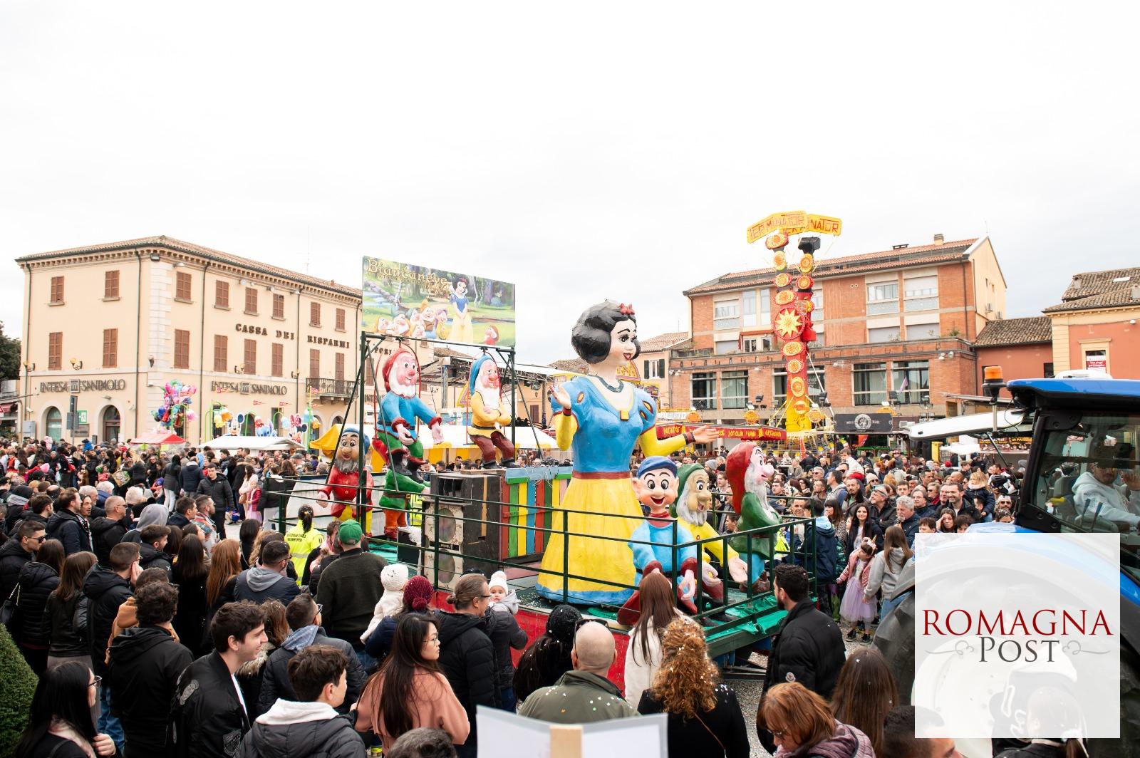 La tradizionale sfilata dei carri allegorici vedrà la partecipazione di nove carri provenienti da fuori città, il carro della Vecchia, simbolo della manifestazione, ed uno forlimpopolese.