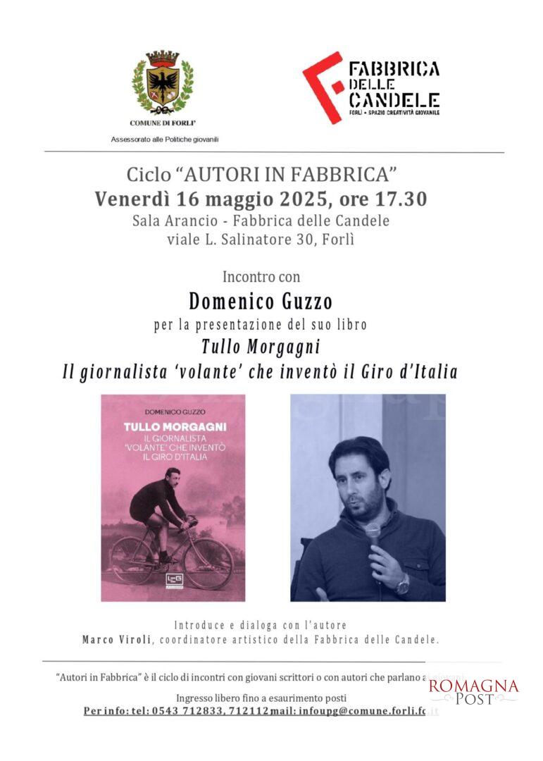 Venerdì 16 maggio alle ore 17.30, presso la Fabbrica delle Candele, sarà presentato il volume di Domenico Guzzo, “Tullo Morgagni. Il giornalista «volante» che inventò il Giro d’Italia”, nell’ambito del ciclo “Autori in Fabbrica”, promosso in occasione della 108ª edizione del Giro d’Italia.