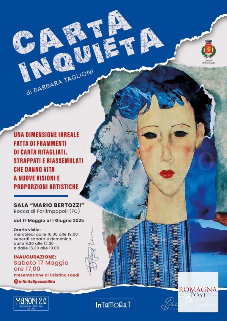 Sabato 17 maggio 2025, alle ore 17:00, nella Sala Mario Bertozzi della Rocca di Forlimpopoli si terrà l’inaugurazione della mostra “Carta inquieta – Collage” di Barbara Taglioni.