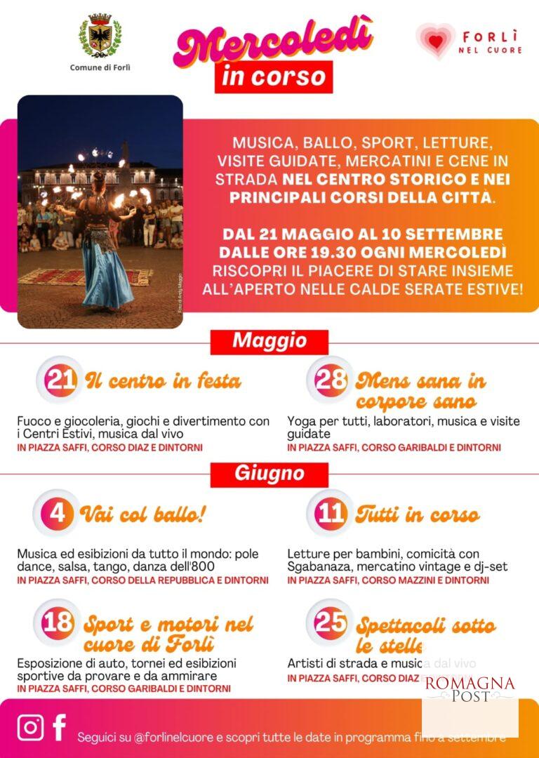 animeranno ogni settimana il centro e i quattro Corsi principali di Forlì con musica, ballo, sport, mercatini, letture e tanto altro.