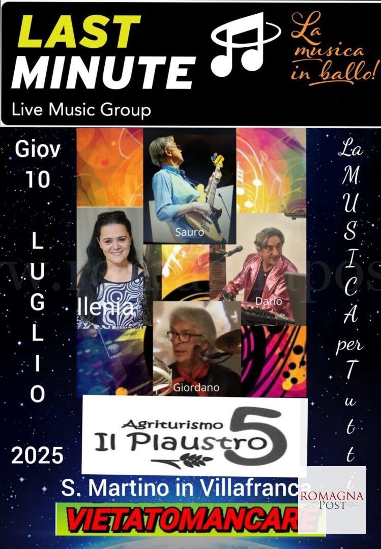 Giovedì 10 luglio 2025 l’Agriturismo “Il Plaustro 5”, via Plaustro 5/G, San Martino in Villafranca (Forlì), in collaborazione con Associazione Culturale Antica Pieve, organizzerà una serata musicale con la partecipazione del gruppo Last Minute che eseguirà dal vivo brani degli anni ’90.