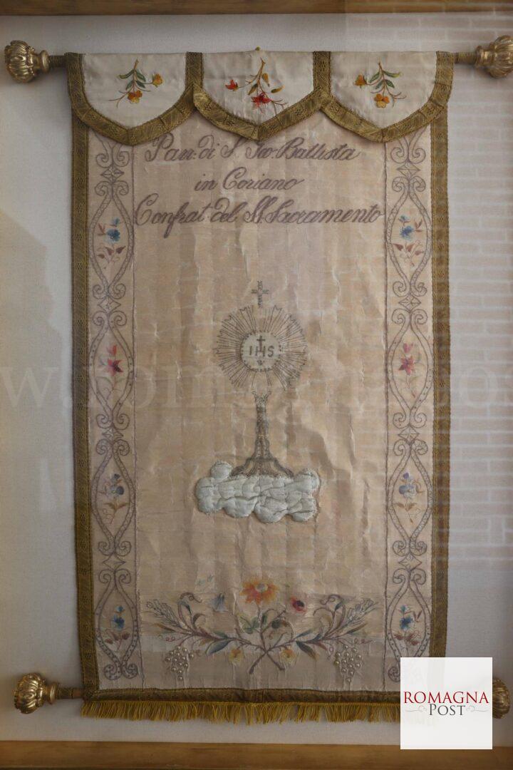 Martedì 16 settembre 2025, alle ore 20.45, presso la Chiesa di San Giovanni Battista in Coriano, via Pacchioni 44/A, Forlì, verrà presentato lo stendardo della Confraternita del Santissimo Sacramento nella versione restaurata.
