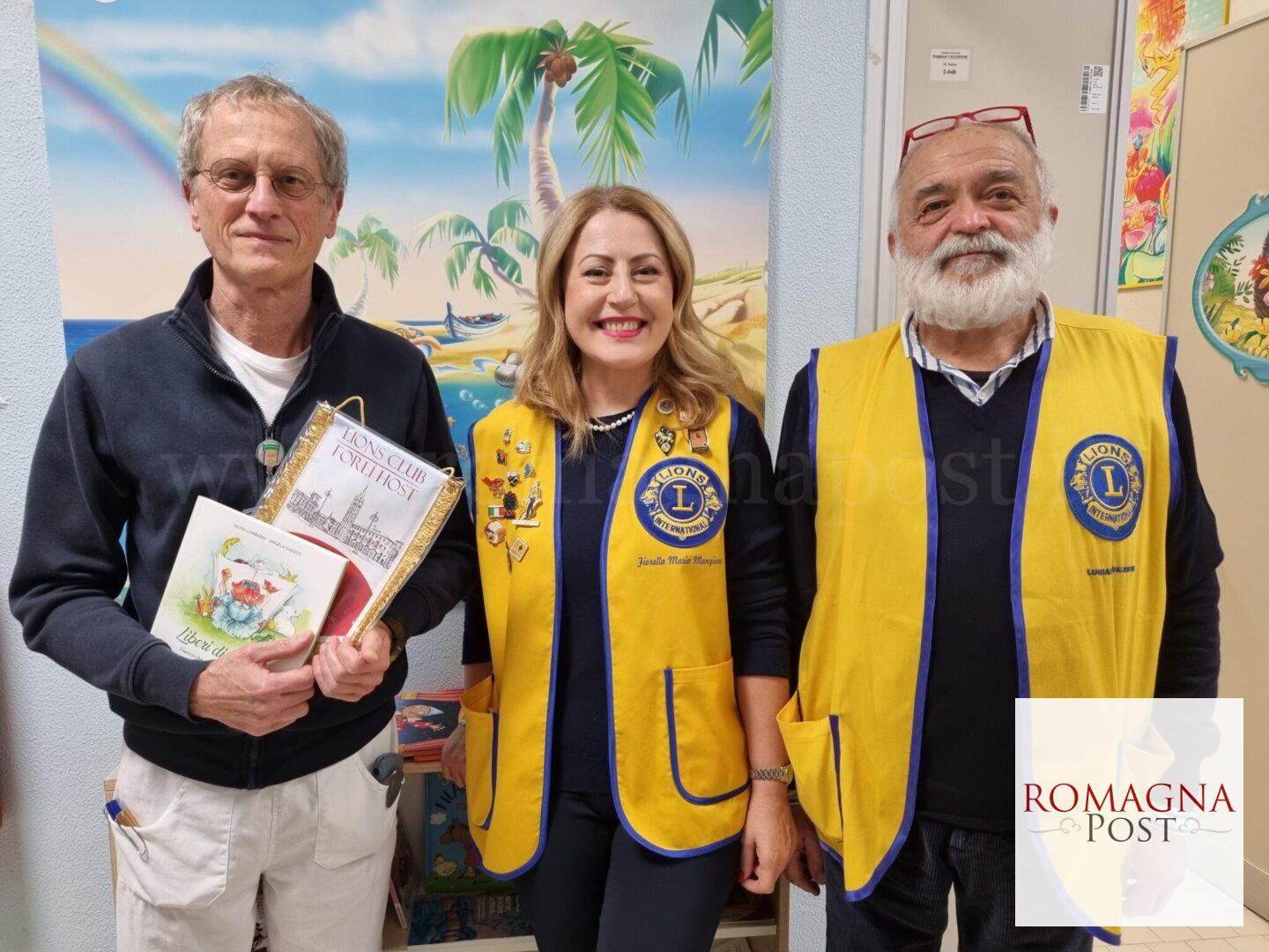 Nell’occasione la presidente Fiorella Maria Mangione ha donato anche alcune copie del volume “Liberi di sognare. Filastrocche per bambini dai 3 ai 99 anni” di Silvio Lombardi, illustrato da Angela Suozzo, recentemente pubblicato dal Lions Club Forlì Host, facendo presente che il ricavato della vendita del libro verrà destinato proprio a Reparto Pediatria, nei confronti del quale a partire da circa quindicina di anni sono stati effettuati diversi service. Nel 2012 furono consegnati 40 libri per implementare la dotazione della biblioteca del reparto, mentre l’anno successivo l’allora presidente Paolo Talamonti, incaricò l’artista Sally Galotti di elaborare e di realizzare un progetto di umanizzazione dei locali di cui ancora oggi beneficiano gli ambienti. Nel 2019 i piccoli ricoverati ricevettero altri libri e giochi e nel 2022 fu donato un apparecchio per il controllo della glicemia.