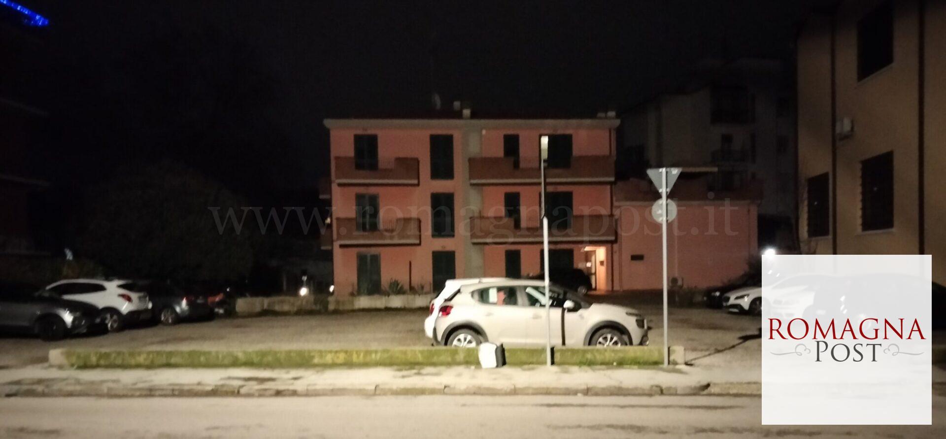 Sempre a Forlì, e sempre in via Gerolimini, proprio di fronte al parcheggio pubblico a pagamento, c’è un parcheggio privato illuminato, come si vede dalla foto, perfettamente.