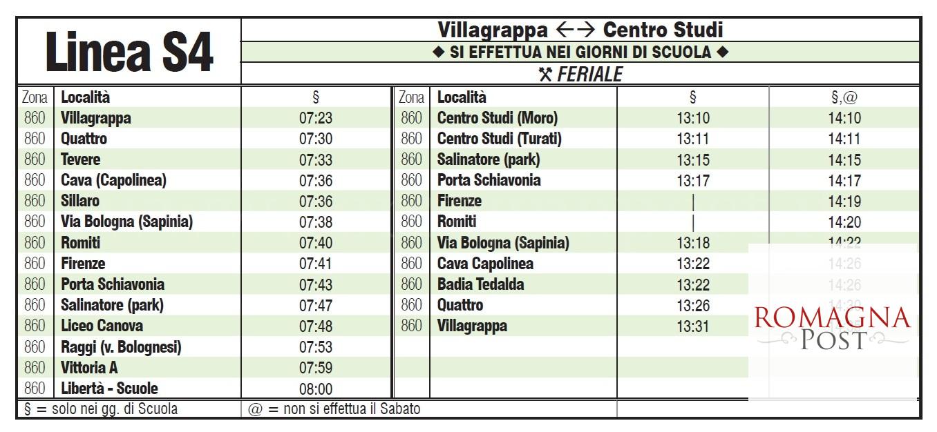 Aspettare un autobus che, quando non è in ritardo, a volte non passa neppure? Sembra una cosa ridicola, eppure succede. Succede per la linea S4, una linea scolastica che da Villagrappa porta al Centro studi Moro a Forlì. Da Villagrappa dovrebbe passare alle 7.23 e per l’intero tragitto impiega mediamente una quarantina di minuti.