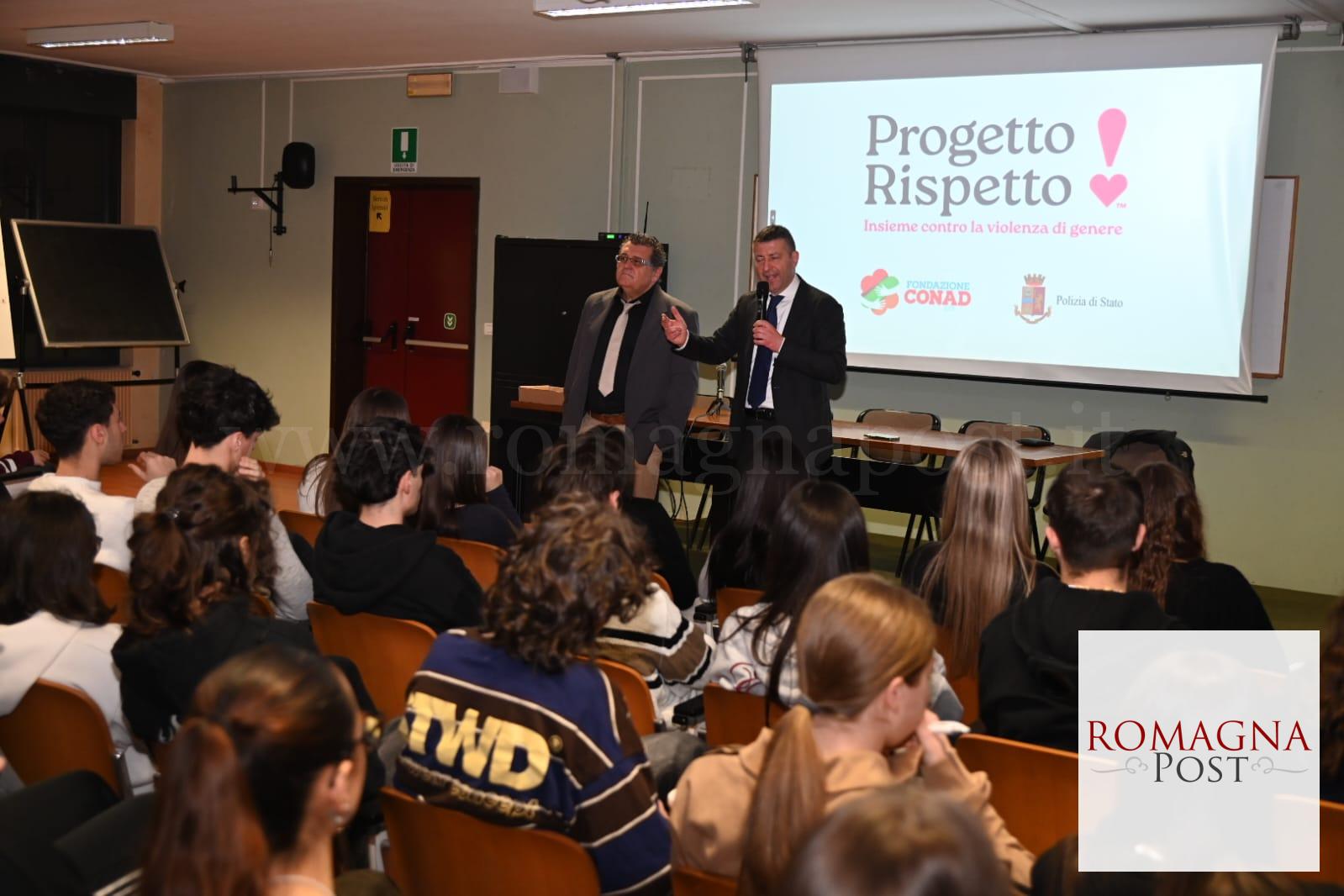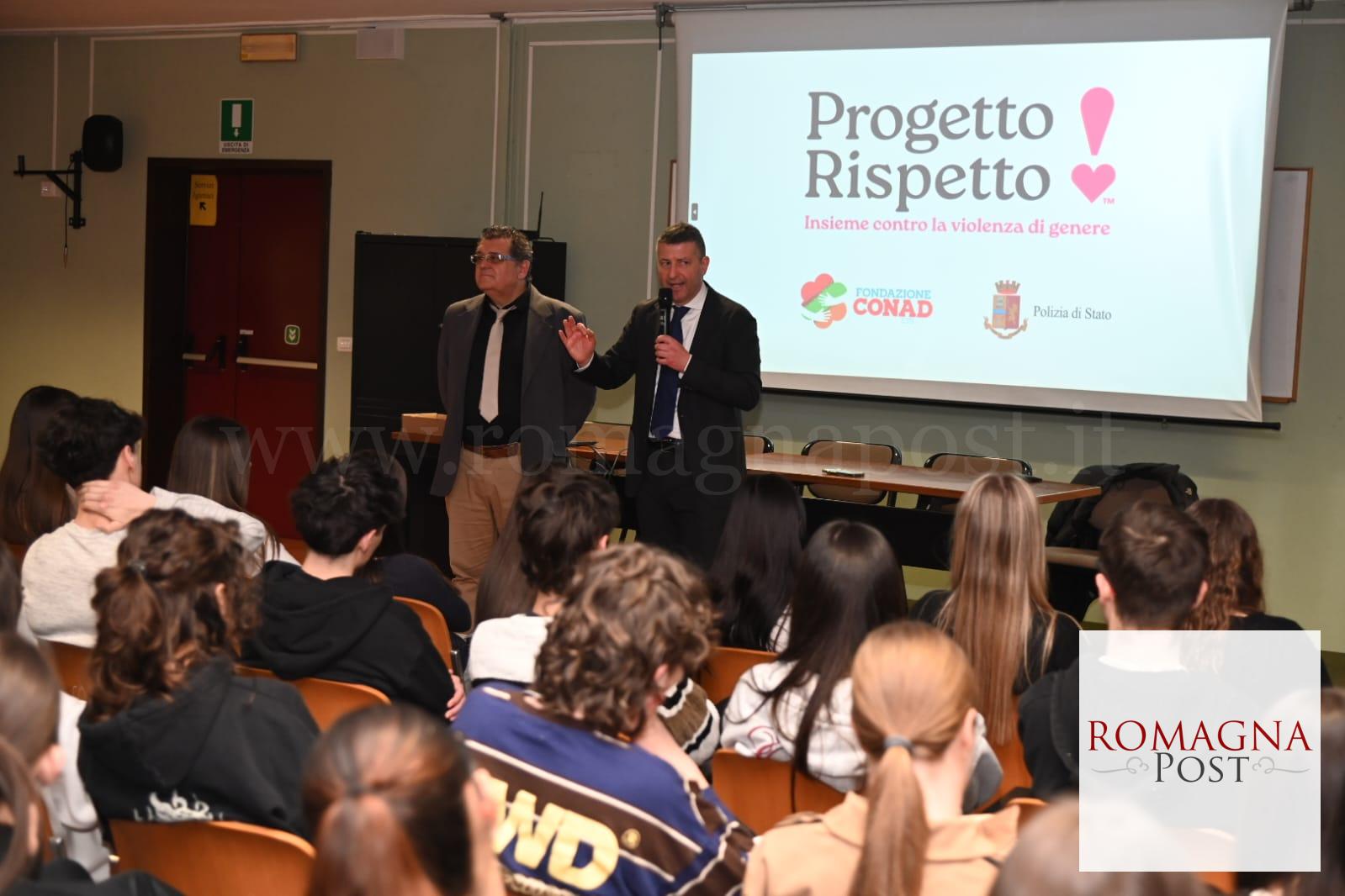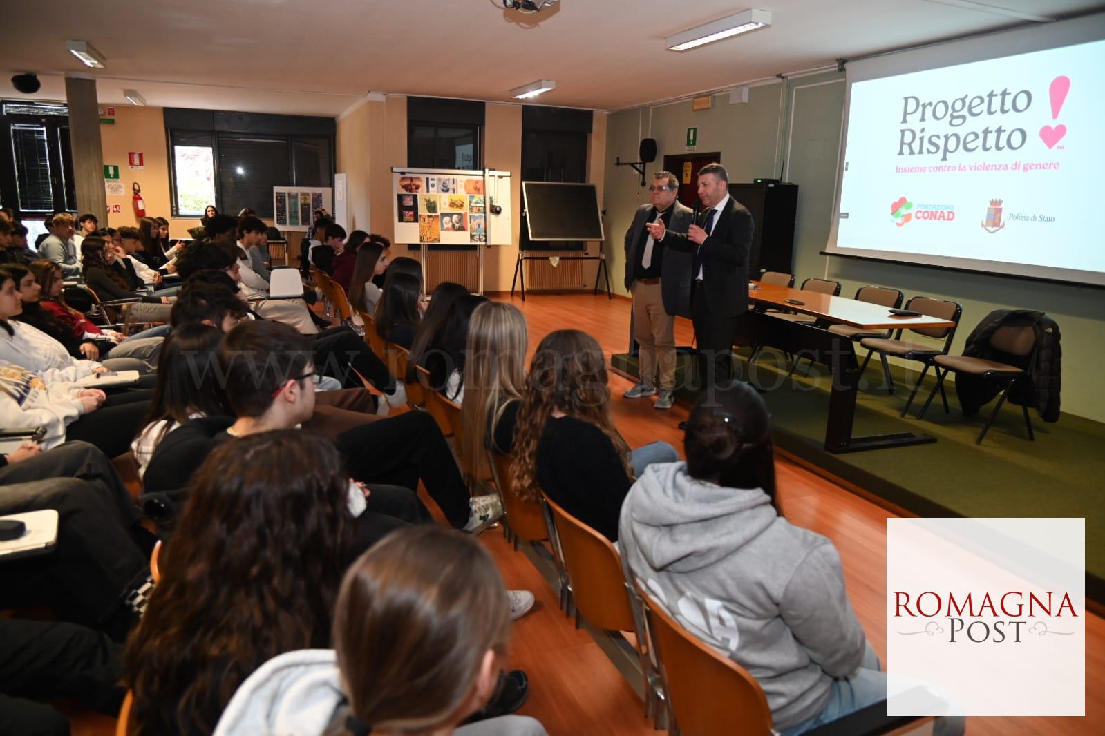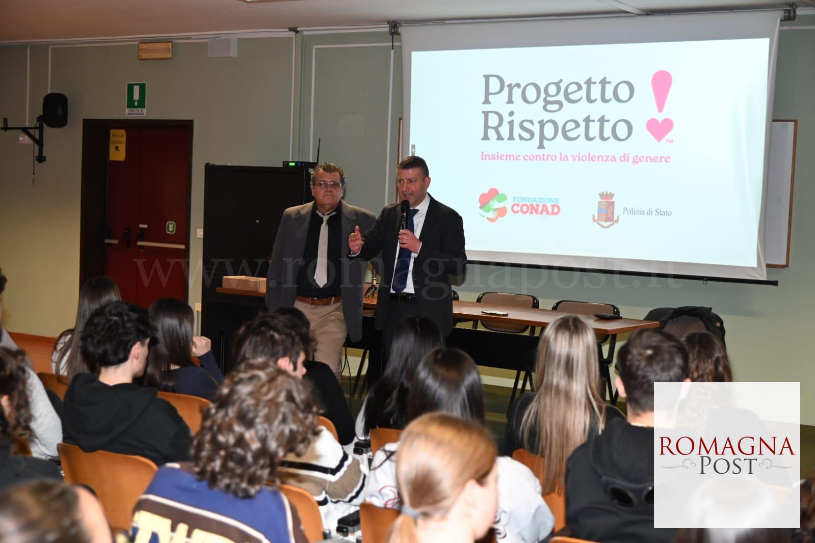 La giornata è stata aperta dagli interventi del Questore di Ravenna, Gianpaolo Patruno, dei rappresentanti della scuola e degli organizzatori di Progetto Rispetto, iniziativa nazionale sostenuta da Fondazione Conad ETS con il supporto della Polizia di Stato e in collegamento con la cooperativa Commercianti Indipendenti Associati.